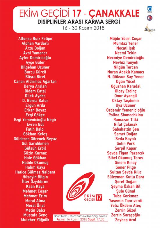 "Cumhuriyetimizin kuruluşunun 95. yılı nedeniyle 16 -30 Kasım 2018 tarihleri arasında gerçekleşecek olan 2018 Ekim Geçidi 17- Çanakkale Sergimizin açılışını onurlandırmanızı dileriz.