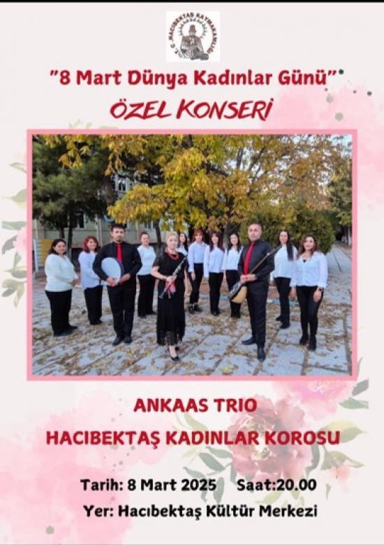 Doç. Anıl ÇELİK’in yönettiği ANKAAS Trio adlı Müzik grubu 8 Mart 2025 tarihinde, Hacıbektaş Kültür Merkezinde kadınlar gününe özel konser düzenledi.