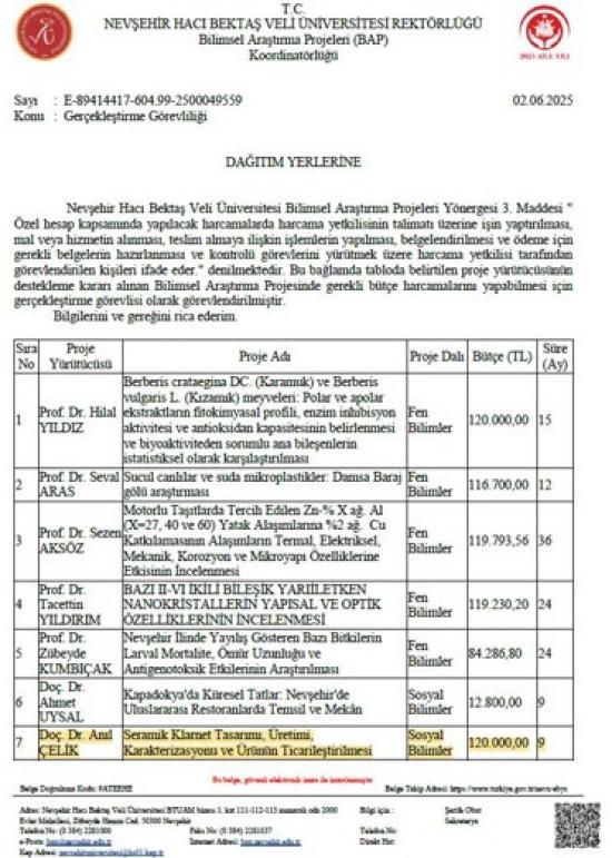 Sahne Sanatları Bölümü Müzik Ana Sanat Dalı Öğretim Üyesi Doç. Anıl ÇELİK’in “Seramik Klarnet Tasarımı-Üretimi” Adlı bap projesi kabul edildi.