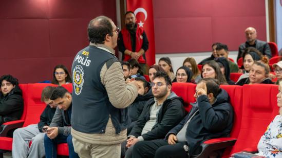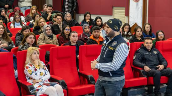Siber Suçlarla Mücadele, Narkotik Suçlarla Mücadele ve Terörle Mücadele birimlerinde görevli uzman personeller; dijital güvenlik, dolandırıcılık yöntemleri, uyuşturucu ile mücadele ve toplumsal güvenlik konularında bilgilendirme yaptı.